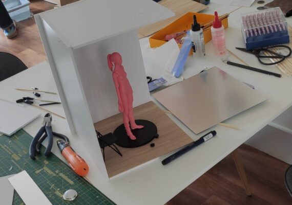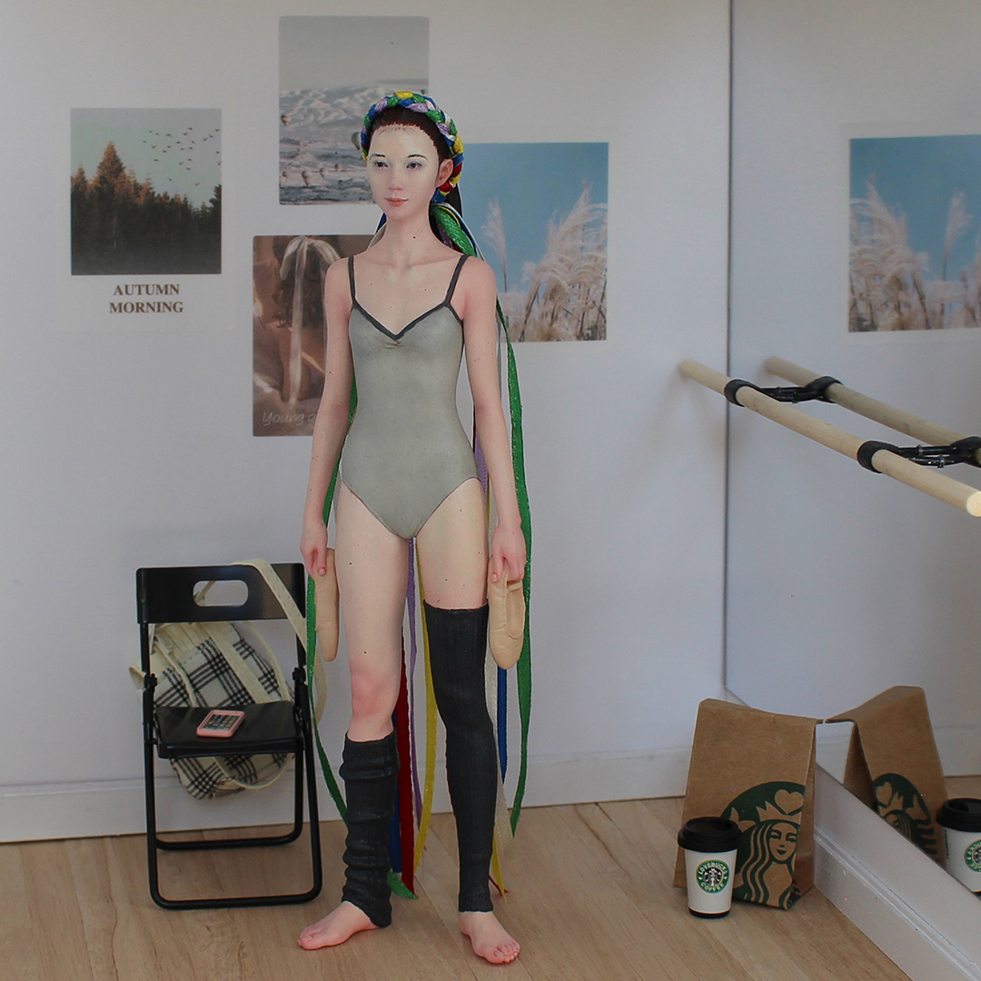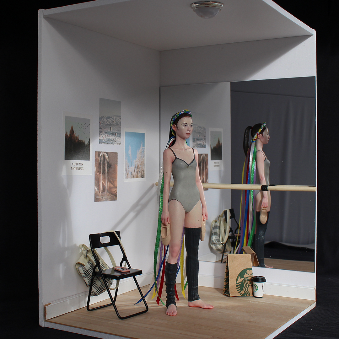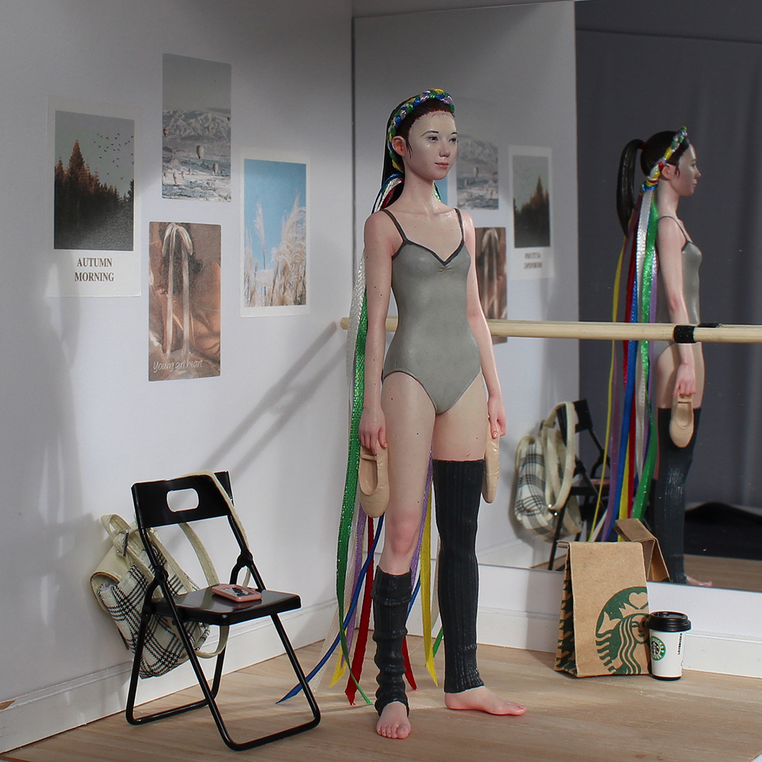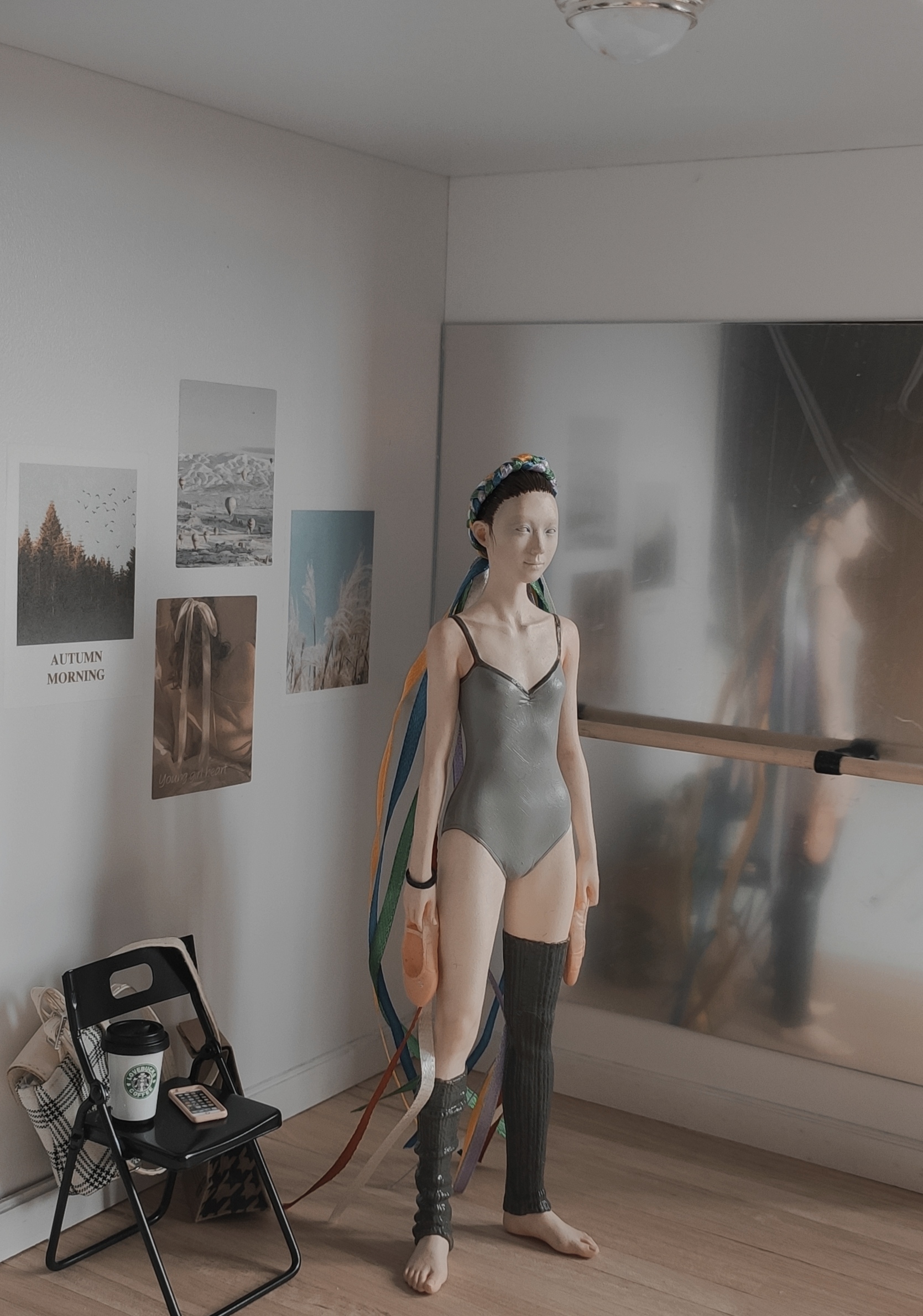 A ballet class scene diorama including a 1/8 scale figure sculpted by Hiroki Hayashi.