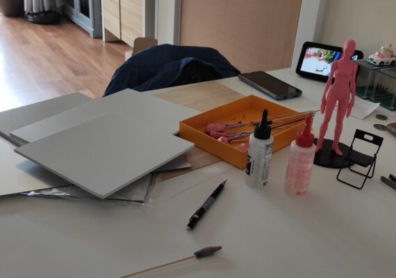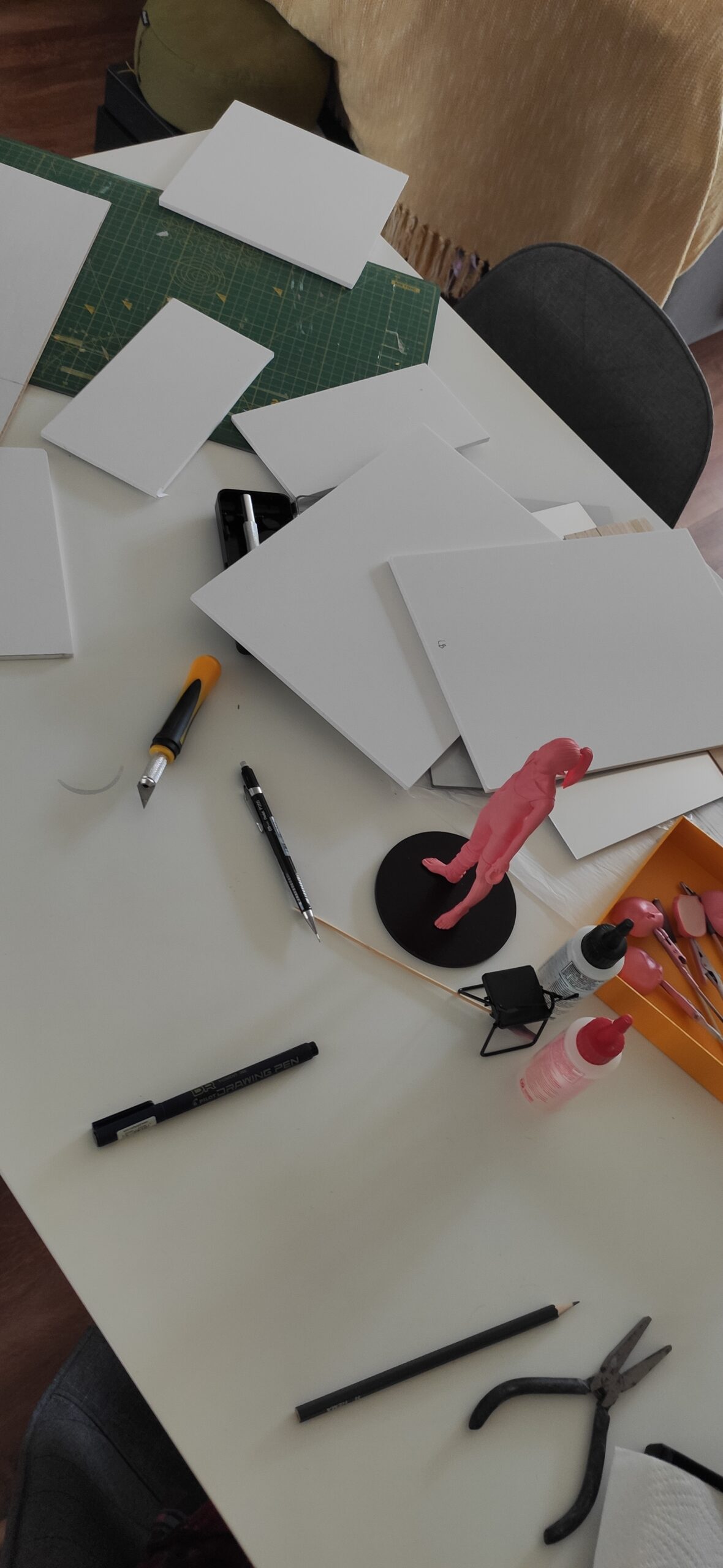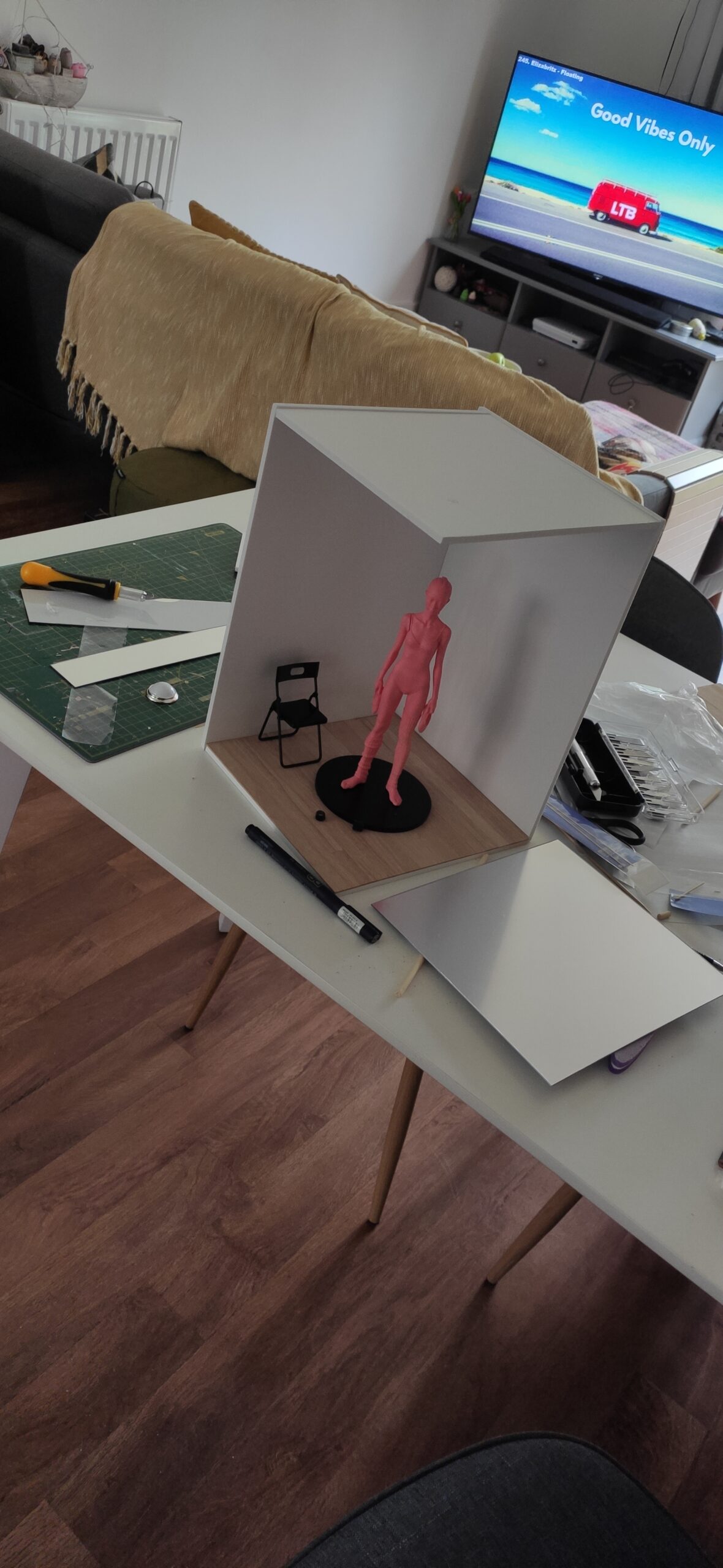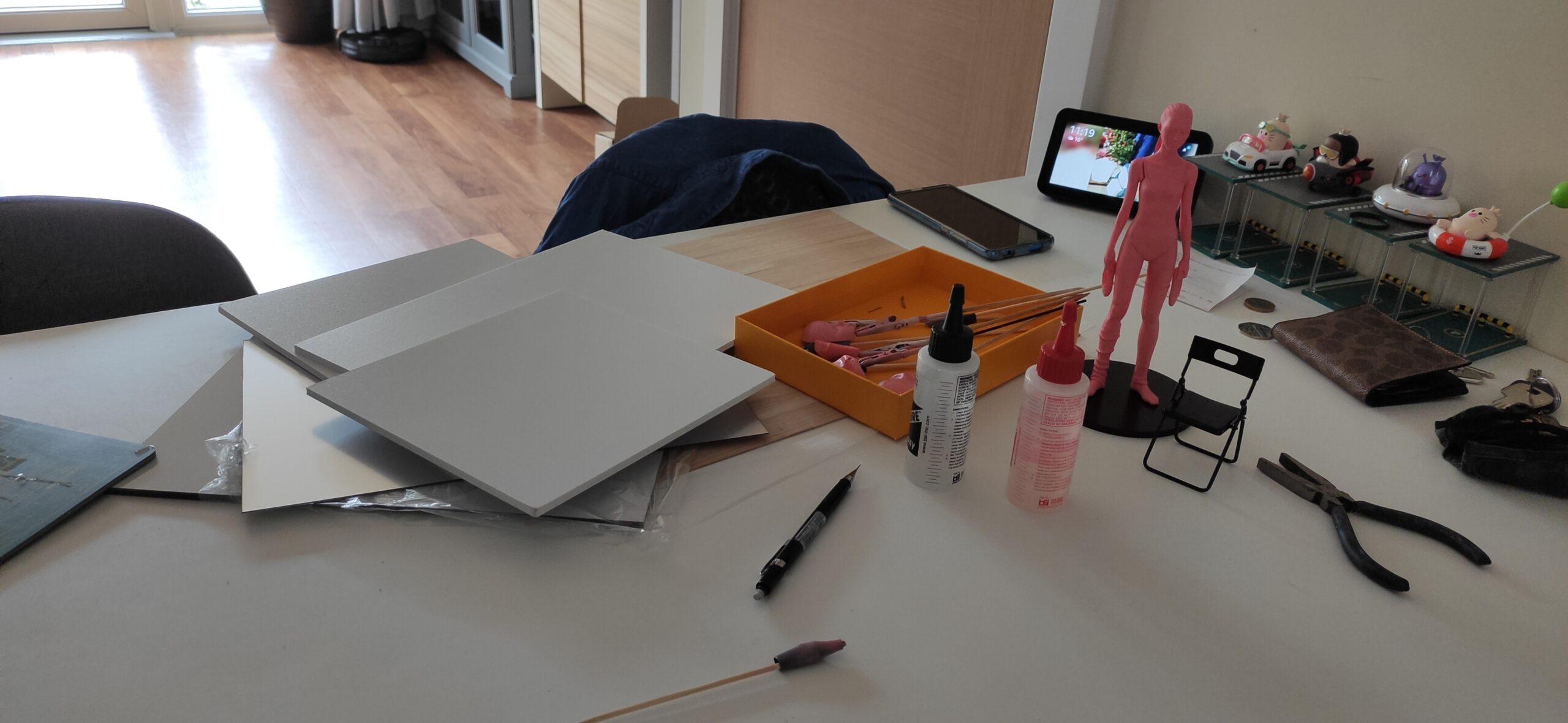 Materials used: various paints incl acrylic, enamel, oils., foam boards, sticks, wooden planks.