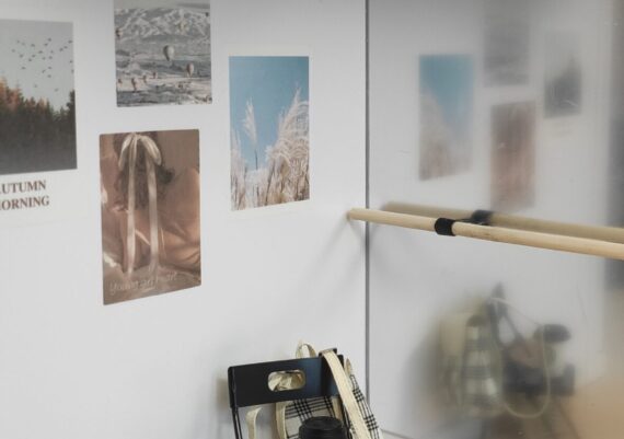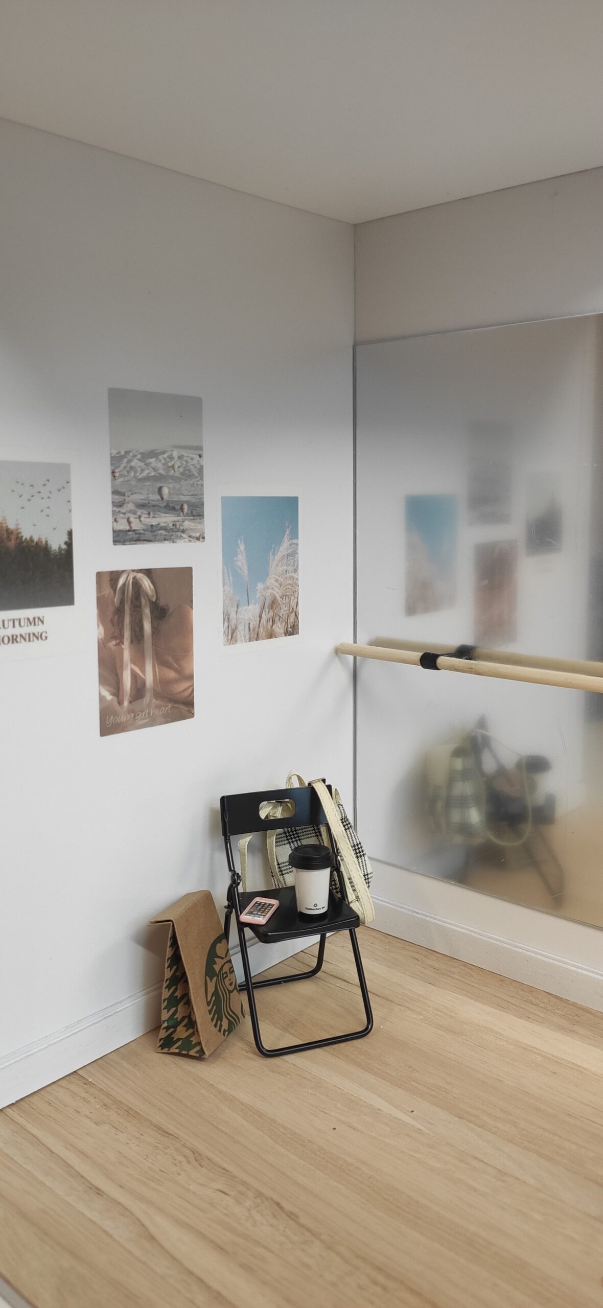 "Dreamy, light, evokes childhood memories of excitement about the future. Mia is working extremely hard on her entry exam programme to enroll in a professional ballet dance school. Mia wakes up early every day to catch this soft, warm sunshine on the walls, before anyone else. She likes her coffee and a quick sandwich before the start. Her hairband is bright and fluid, just like her dreams of becoming a world-renowned ballet dancer."
